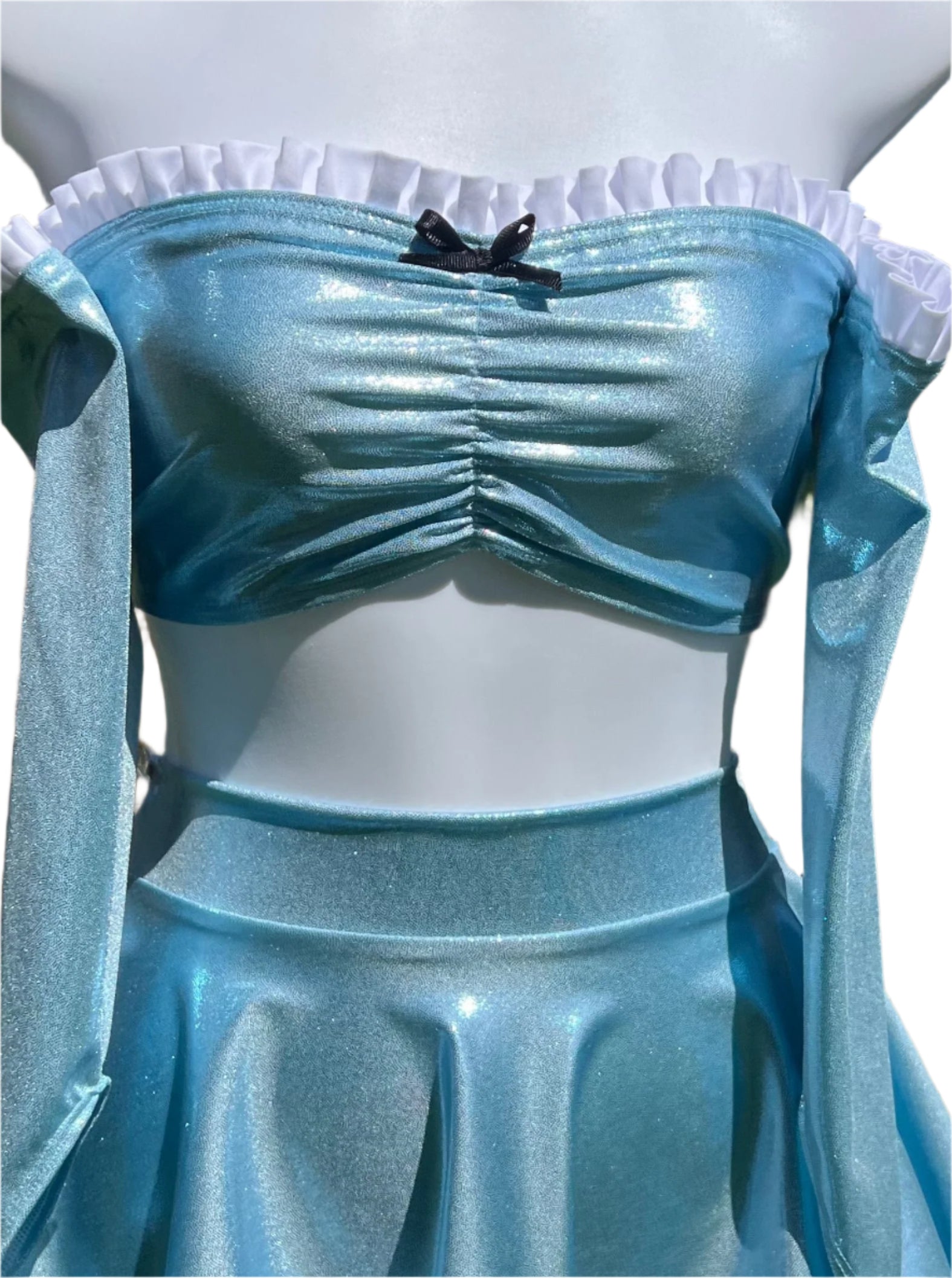 You're beyond the looking glass HOT in the Alice Boo Top. Featuring a ruffle trim, scrunch bandeau feature, met with a black bow in the middle to create the ultimate Alice look.