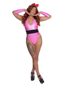 The Bubbles Boo Bodysuit Set brings a playful twist to festival fashion, inspired by the iconic character Bubbles from the Powerpuff Girls. This sleek one-piece halter bodysuit combines bold, nostalgic vibes with a modern, flattering fit, making it the perfect outfit for festivals or events.