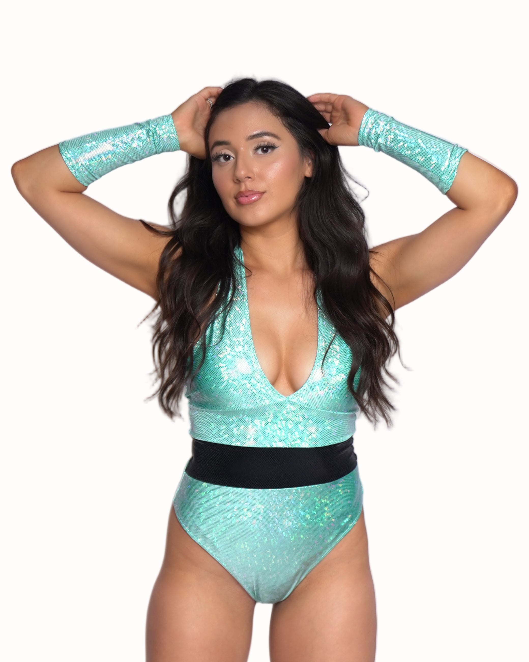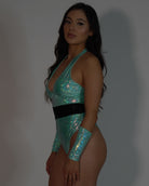 The Bubbles Boo Bodysuit Set brings a playful twist to festival fashion, inspired by the iconic character Bubbles from the Powerpuff Girls. This sleek one-piece halter bodysuit combines bold, nostalgic vibes with a modern, flattering fit.