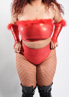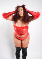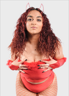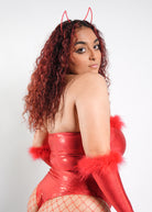 You're the hottest of them all in our inferno boo set. Light the night away in our fiery bright red furry set and people will your hotness all night. The set includes a top, bottom, and sleeves are optional.