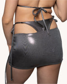 Turn heads in this sleek, mini skirt made from metallic gunmetal fabric. Designed with a curve hugging fit, this skirt adds edge to any rave, festival, or night-out look.