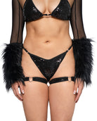 Shine bright in this black sequin triangle top, featuring a flirty heart charm at the center for a touch of playful elegance.