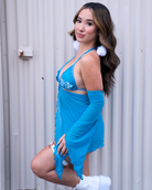 Float into the rave like a fever dream in this mesh triangle top, finished with a sequin butterfly and flirty lettuce hems. Paired with snatched high-rise bottoms and optional flowy sleeves for that extra main character moment. You didn’t come to blend in.