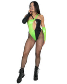 The Shego Boo Bodysuit gives that fierce energy embodying shego with a shiny green and black combo of fabric. Complete the look with arm sleeves and accessories.