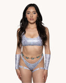 Take your look to the next level with the Unleashed Boo Leg Garters — a bold finishing touch that ties your whole fit together. Made from matching white wild print fabric, these stretchy garters sit comfortably on the upper thighs and stay in place while you dance, pose, and slay the night away. Whether you wear them with the Unleashed Boo Bodysuit or mix them into another look, these garters add that extra pop of energy and edge.